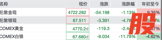 2月6日,黄金白银直线跳水,截至北京时间7:50左右,现货白银跌超5%,在67美元/盎司附近震荡,昨日收跌逾20%,回吐年初至今涨幅,较1月29日创下的历史高点回落逾40%。现货黄金跌超1%,跌至4722美元/盎司关口。(回顾)